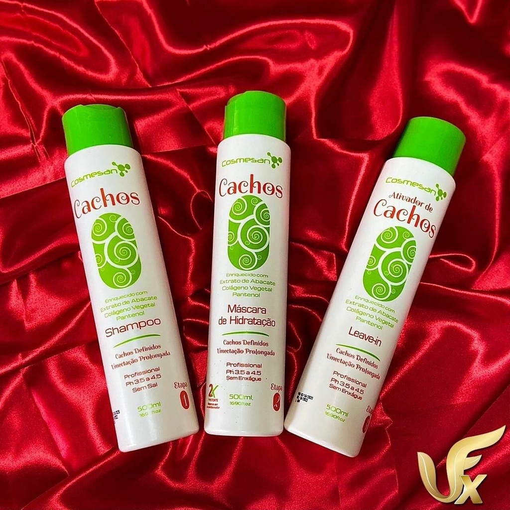 Bom, a Cosmesan pode te ajudar com isso independente da resposta. Nosso Kit Cachos vai mudar completamente a sua rotina de cuidados com o cabelo. Rápido, prático e eficiente: O Kit Cachos da Cosmesan é tudo isso, aproveite. Descrição: – O Kit Ativador de Cachos Cosmesan foi especialmente desenvolvido com extrato natural de abacate, pantenol e um potente complexo de colágeno vegetal favorecendo a umectação e prolongando a formação de cachos na fibra capilar. Com ativos concentrados o leave-in age diretamente na umectação e ativação do efeito cacheado